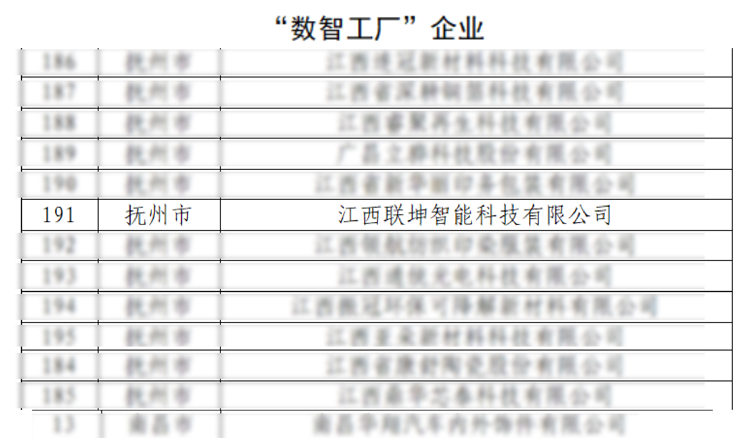 江西联坤成功入选江西省第二批“数智工厂”名单